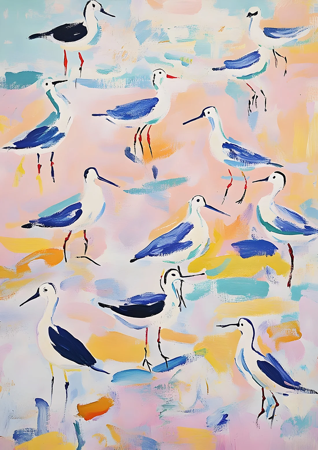This enchanting print, titled ‘Seagulls’, beautifully encapsulates the vibrancy of coastal life, showcasing a delightful array of whimsical seagulls in playful motion against a backdrop of soft pastels. The gentle hues of pink, blue, and yellow work harmoniously to create a serene atmosphere, reminiscent of gentle sea breezes and the soothing sounds of the shore. Each brushstroke conveys a sense of movement, as if the birds are caught mid-flight, embodying the lively spirit of nature. More than just an artistic representation, this piece is a celebration of freedom and joy. Its modern aesthetic effortlessly complements contemporary decor, making it an ideal choice for any space seeking a touch of the outdoors. The harmonious colour palette invites tranquillity, transforming your environment into a peaceful retreat. Elevate your walls with this stunning print, infusing your home with life and colour, while capturing the essence of nature’s beauty.