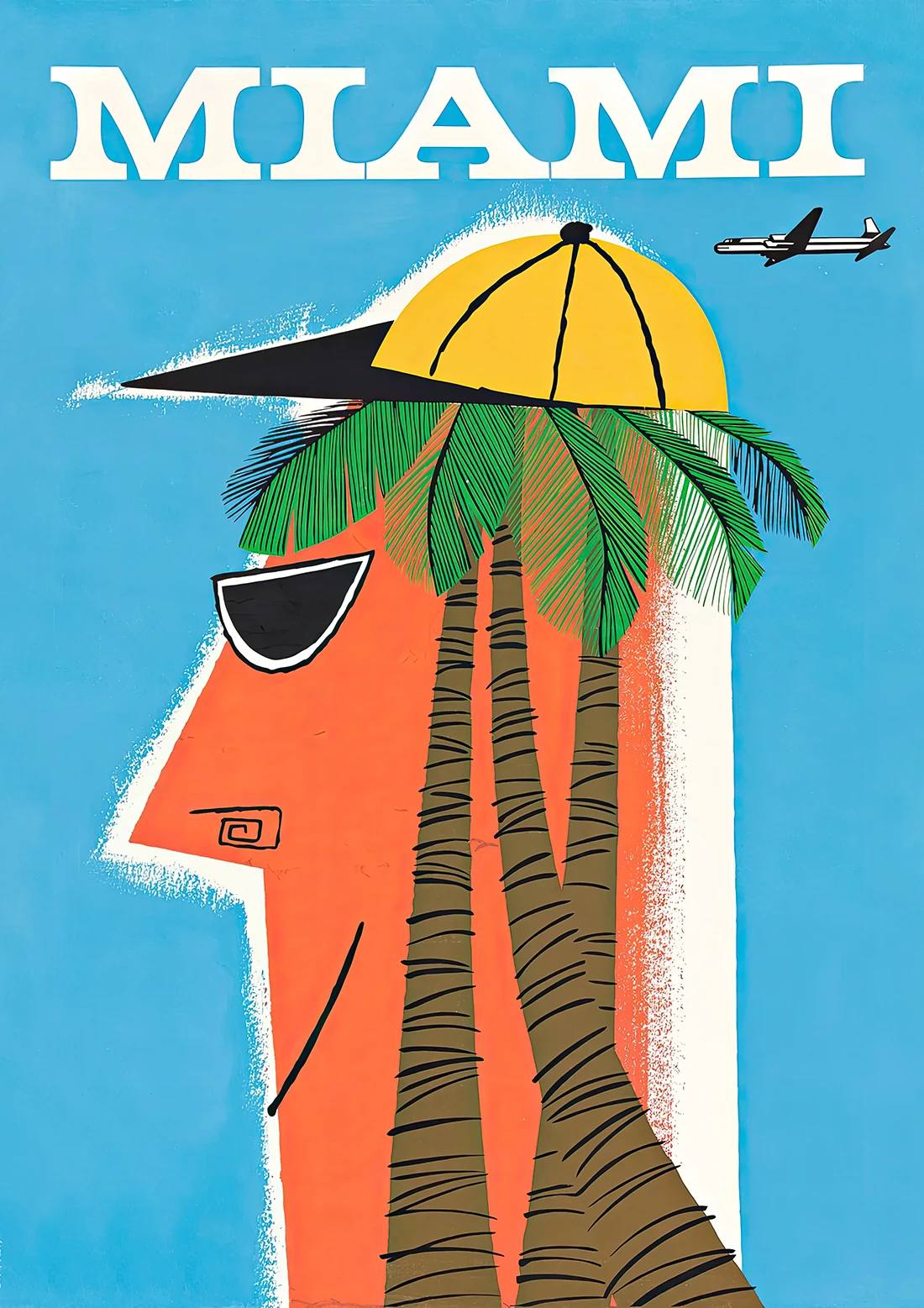 Embrace the vibrant allure of Miami with this stunning print, a perfect tribute to the city’s iconic Art Deco heritage. The artwork captures the essence of tropical living, featuring bold colours like sunny yellows and deep greens, set against a striking blue backdrop. The playful depiction of palm trees and a laid-back figure invites you to experience the energetic vibe that Miami is renowned for, evoking feelings of warmth and adventure. This piece is not just a visual delight; it embodies the spirit of a city that thrives on its rich history and culture. Ideal for any space, the Miami print effortlessly adds a touch of retro charm, making it a perfect conversation starter. Whether you’re a seasoned traveller or an admirer of vintage aesthetics, this artwork will inspire daydreams of sun-soaked beaches and lively nights out in the Magic City.