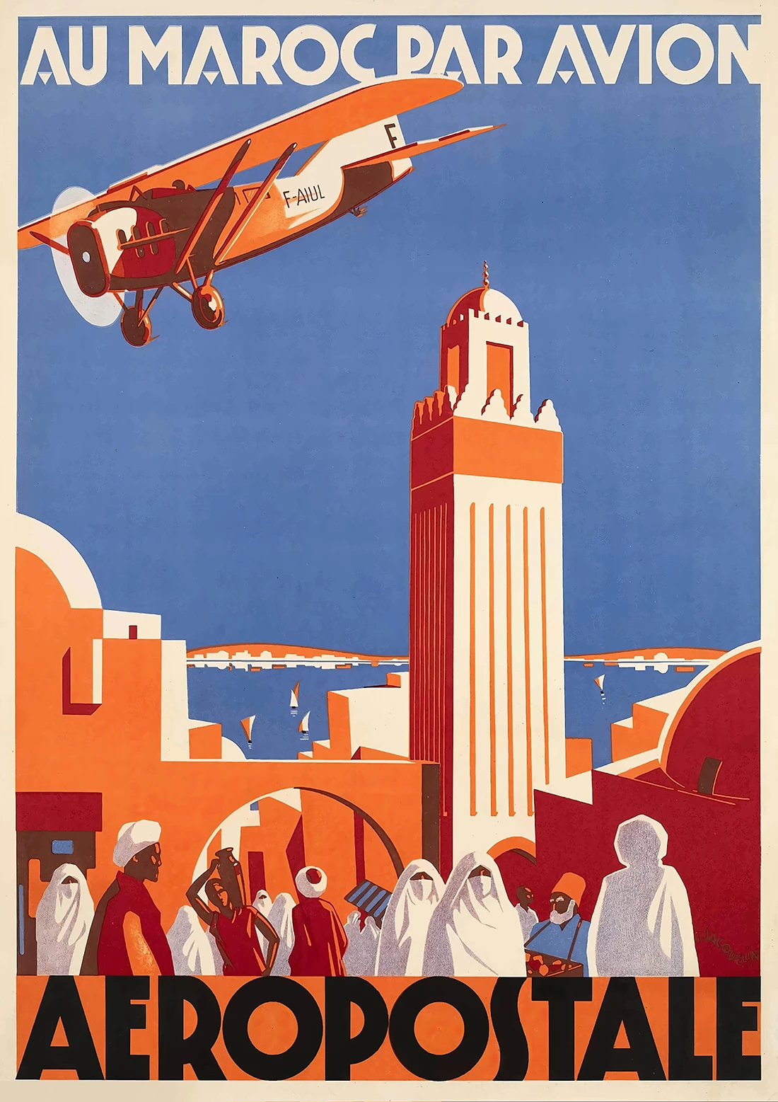 Immerse yourself in the captivating essence of Morocco with this exquisite vintage travel print. The artwork boasts a striking colour palette of rich reds, vibrant oranges, and bold blues, evoking the lively atmosphere of bustling spice markets and tranquil desert vistas. An early airmail aircraft soars gracefully above iconic Moroccan architecture, symbolising the adventurous spirit of early 20th-century exploration and the vibrant cultural exchanges that characterised the era. Ideal for seasoned travellers and dreamers alike, this piece invites you to envision exotic destinations and thrilling escapades. More than just a decorative accent for your space, this alluring print serves as a visual narrative, celebrating Morocco’s unique charm and timeless beauty. Let it ignite your imagination and transport you to a world brimming with adventure and discovery.